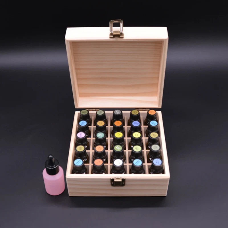 Essential Oil Wooden Storage Box 12/25 Slots Carry Organizer Essential Oil Bottles Aromatherapy Container Storage Box Case
