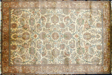 Extreme high knot Kashmir silk on silk carpet 4' x 6'